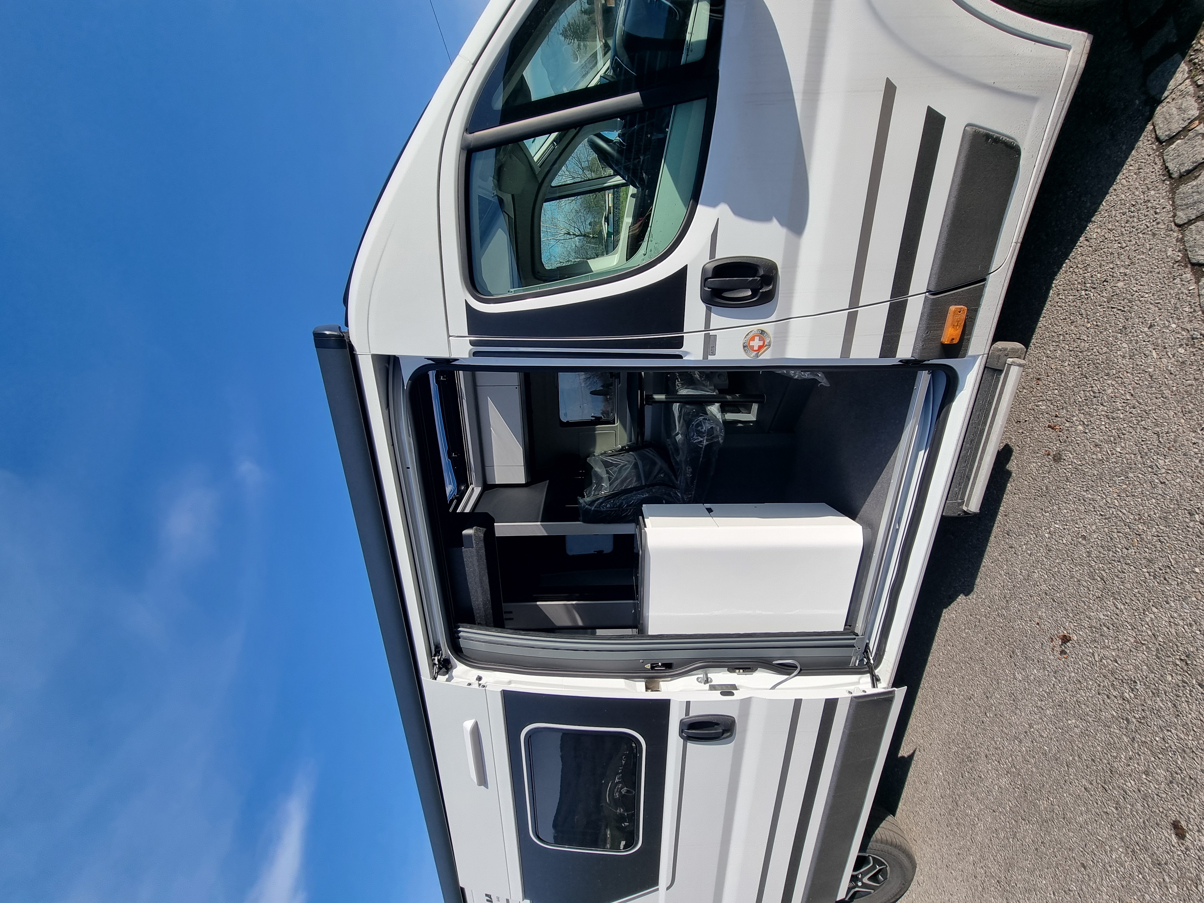 - Swiss-TWIN Supreme Paket: Pack Comfort 1 (Radioantenne im Rückspiegel, Lautsprecher, Multifunktionslenkrad), Pack Comfort 2 (Schwarzes Unterfahrschutzblech, Nebelscheinwerfer mit Abbiegefunktion, Lackierte Stossstange), Pack Safety (Fussgängererkennung, Fahrsprunterstützung, Verkehrszeichenerkennung, müdigkeitserkenneung, Licht- und Regensensoren), Spannungsverstärker Booster, Isolierter und beheizter Abwassertank 85l, Frontschieben+Seitenscheiben Plisseeverdunkelung, Moskitonetz an der Schiebetüre
