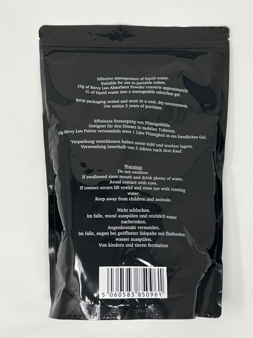1kg Beutel Bivvy Loo Super Absorbent Powder - 10g Pulver verwandeln etwa 1 Liter flüssigen Abfall in ein handliches Gel.