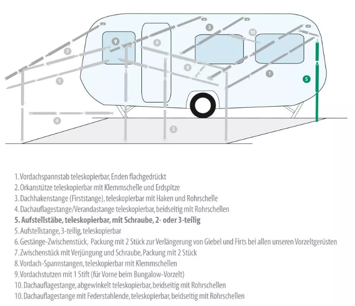 Teleskopierbar z.B. für Sonnendächer und Seiten- und Vorderwände.