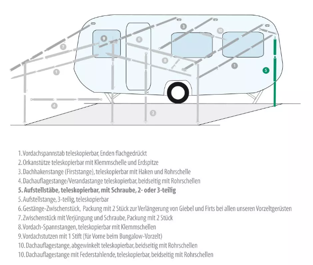 Teleskopierbar z.B. für Sonnendächer und Seiten- und Vorderwände.