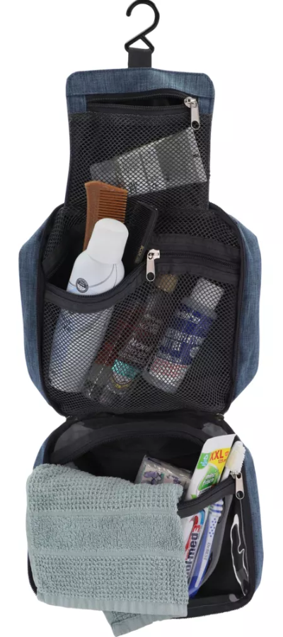 Geräumiger Kulturbeutel mit übersichtlichen Verstaufächern.