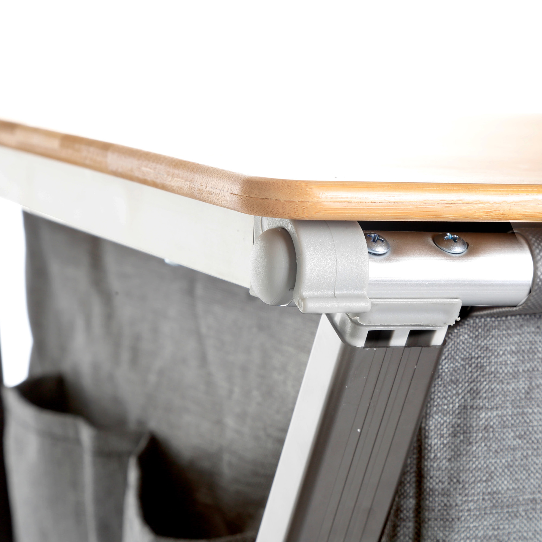 Stabile Vielzweckschränke mit CROSS Rahmen aus Alu-Rechteckprofil und zentralem Metallgelenk. Alle Füße sind höhenverstellbar. Mit 3 bzw. 4 Innenablagen und einer obenliegenden Arbeitsplatte aus Bambus. Die Schränke lassen sich ohne zusätzliches Befestigungsmaterial – mountless – einfach auf- und abbauen, die Außenhaut und Ablagen aus ansprechendem grauen, robustem Polyester bleiben auch im zusammengeklappten Zustand mit dem außenliegenden Gestell verbunden. Inklusive Tragetasche. Mit 4 Innenablagen, Windschutz und seitlichen Utensilientaschen.