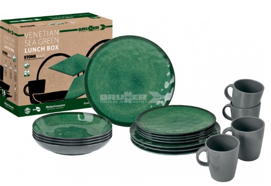 Hochwertig verarbeitetes, 16-teiliges Geschirrset bestehend aus verschiedenen Tellern mit origineller Steingut-Optik. Alle Teller sind aus StoneTouch-Material, einem bruchfestem Melaminharz/Mineral-Gemisch mit toller Porzellan-Haptik und hervorragenden Eigenschaften für den Camping- und Outdoorbereich gefertigt.