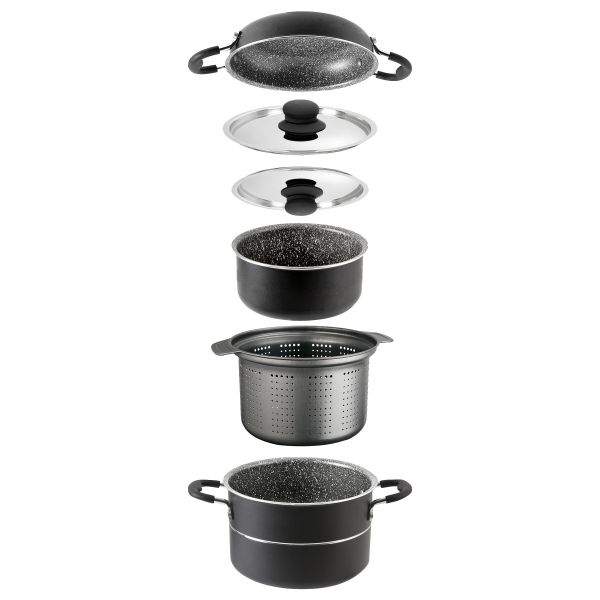Topfset-Kollektion aus Aluminium mit hochwertiger Antihaftbeschichtung.