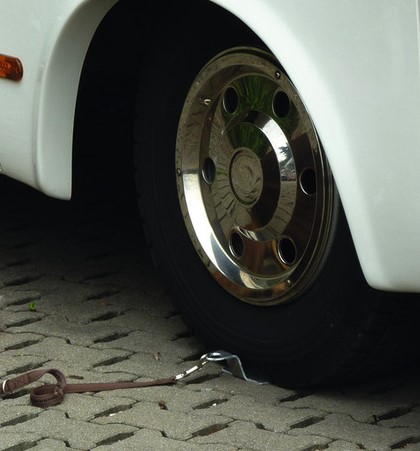 Mit dem Fahrzeugrad auf die Platte fahren und schon können Sie Ihr Haustier anbinden.
