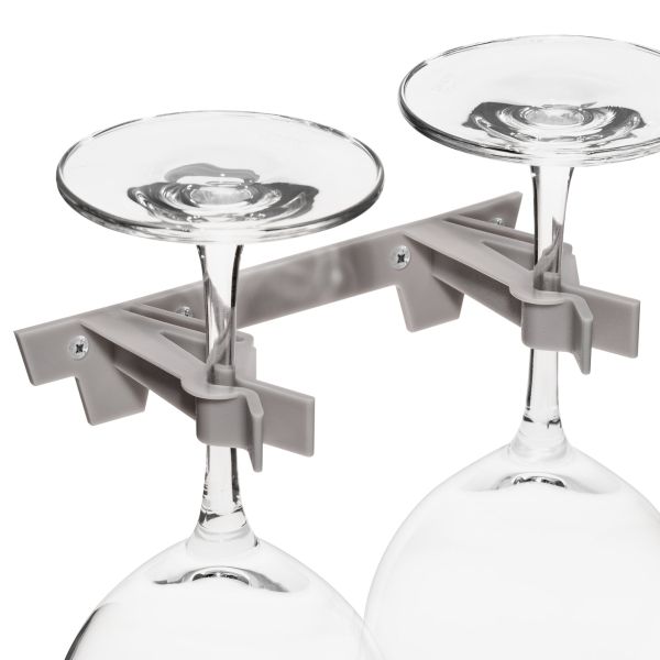 Werden 2 Stück untereinder montiert, haben auch Gläser mit langem Stiel einen sehr guten Halt.