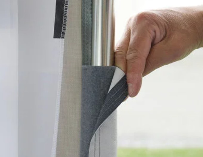 Beide Seitenwände sind gegeneinander austauschbar und zur Veranda abklappbar; eine Seitenwand verfügt über die Kombination Eingangstür und Gaze-/Folienfenster, die andere hat 2 Gaze-/Folienfenster. Alle Fenster mit Gardinen und doppelten Fensterklappen ausgestattet. Zusätzlich in jeder Seitenwand ein Lüftungsfenster (Moskitogaze). Die Lüftungsfenster in beiden Seitenwänden mit hochroll- und abspannbarer Wetterschutzhaube, so dass dauerhaft und wetterunabhängig eine geschützte Querventilation hergestellt werden kann. Alle Klappen und Wetterschutzhauben ringsum mit Reißverschluss verschließbar, auch waagerecht. Senkrechte Reißverschlüsse der außenliegenden Fensterklappe mit zusätzlicher Abdeckung. Senkrechter und waagerechter Hohlsaum für Sturmgestänge mit Klettverschluss; optionaler Erkeranbau an der rechten Seite möglich.