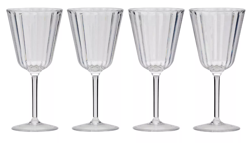 Durch die länglichen Rillen sind die SAN-Gläser optisch ansprechend und dem echten Glas zum verwechseln ähnlich - darüber hinaus sind sie bruchsicher und leicht im Gewicht.
