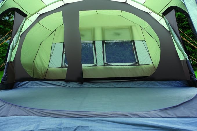 Gesamt drei Eingänge machen dieses Familienzelt sehr komfortabel, wobei eine Tür zweigeteilt ist und zusätzlich mit Meshgewebe ausgerüstet ist.
