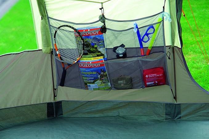 Insgesamt 5 Lüftungen sorgen für ein hervorragendes Raumklima und beugen dem gefürchteten Hitzestau im Zelt vor. Durch zwei große Folienfenster und zwei Meshfester fällt sehr viel Licht ins Zeltinnere.