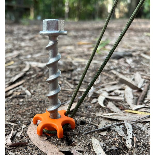 Peg&Stop HeavyDuty ist der stärkste Schraubhering von Peggy Peg. Er besteht aus recyceltem Edelstahl in Marinequalität und wurde speziell für die Anwendung mit einem Schlagschrauber entwickelt. Konzipiert für hoch verdichtete, extrem harte und steinige Böden in außergewöhnlichen Bedingungen. Durch die höhenverstellbare Kontermutter 2.0 (mit Haken) muss der Schraubhering nicht immer ganz eingeschraubt werden. Dieser Hering kann durch ein bis zwei Rechtsdrehungen mit der Kontermutter sowohl die Fix&Go Ankerplatten 2.0 mit Gegendruck befestigen als auch Zelte und Sturmleinen sicher abspannen. Einfach einschrauben, bis der Hering keinen Vortrieb mehr hat und fest im Erdreich verankert ist. Dann Mutter zum tiefstmöglichen Punkt drehen und Leine oder Abspannelement einhaken – fertig. Das Material ist salzwasserresistent & rostfrei.