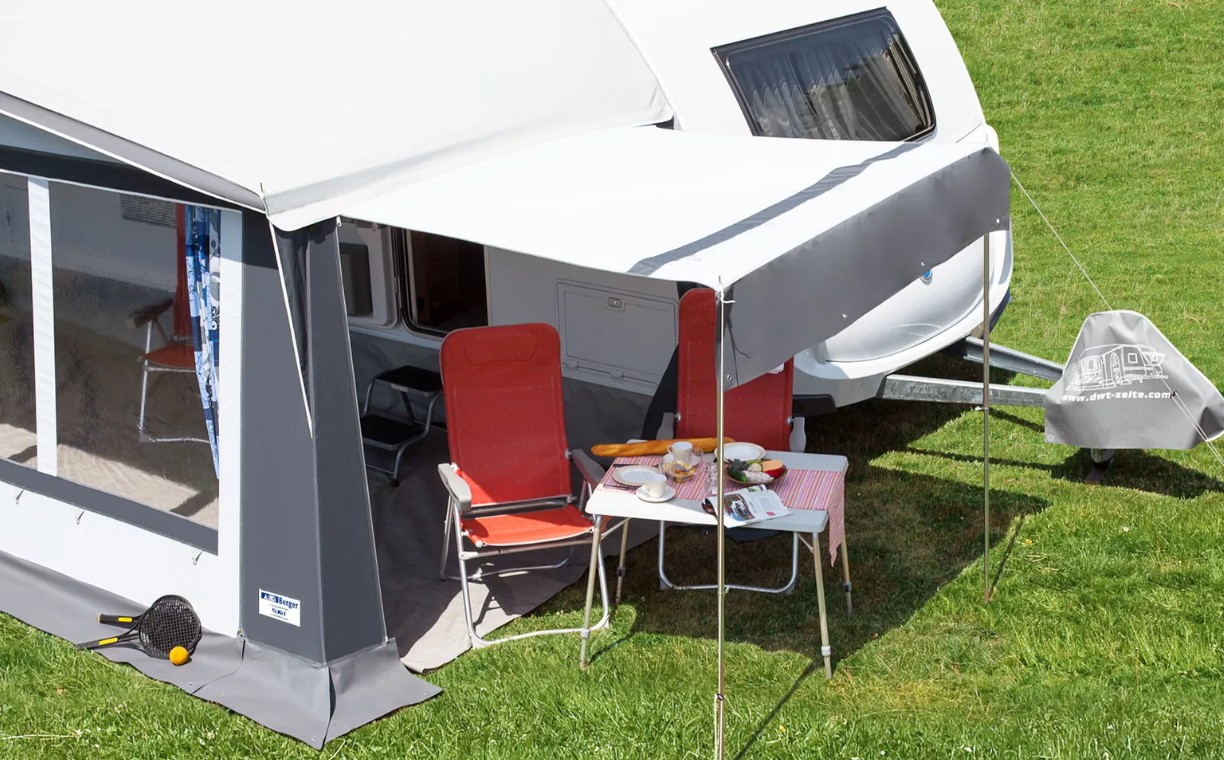 Reisevorzelt, 3-tlg. Zelttiefe 240 cm. Vordach: ca. 20 cm, abwaschbar und wetterfest.