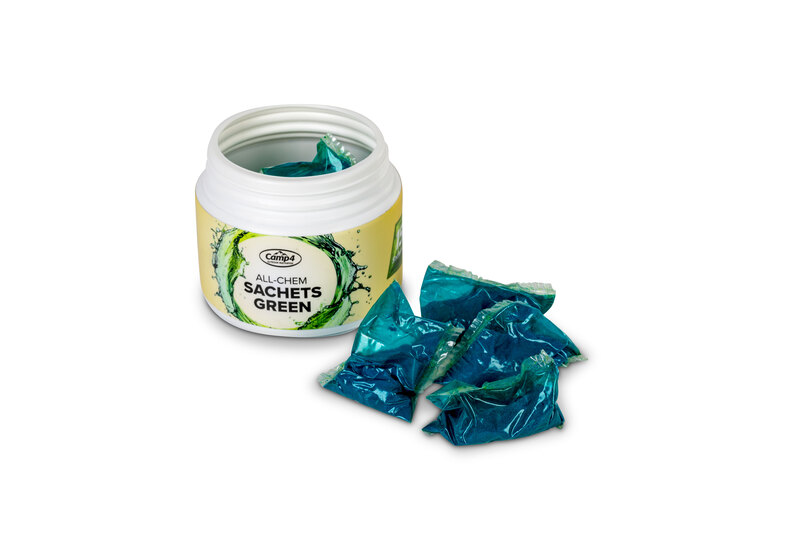 All-Chem Sachets Green zersetzten organische Abfälle und Toilettenpapier, beseitigen unangenehme Gerüche und reduzieren die Gasbildung im Fäkalientank Ihrer Campingtoilette.