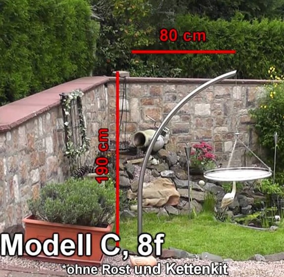 Der Schneider Grillgalgen – Modell C ist ein absoluter Blickfang in Ihrer Grillhütte, auf Ihrem Grillplatz oder Ihrer Terrasse. Durch seine gebogene Form hat er eine elegante Erscheinungsweise und steht edel und sicher auf Ihrem Anwesen. Alle Bekannten und Verwandten werden Sie um dieses Prachtstück beneiden. Überzeugen Sie auf Ihrer nächsten Grillparty, bei Events oder anlässlich von Geburtstagen mit der Schneider Grill-Qualität aus 100 Prozent Edelstahl. Bereiten Sie herzhaften Schwenker, leckere Rindersteaks, Brat- oder Mettwürstchen zu. Natürlich können Sie auch vegetarischen Gerichte, Grillgemüse und Grillkäse über dem lodernden Feuer grillen und mit Ihren Freunden genießen.