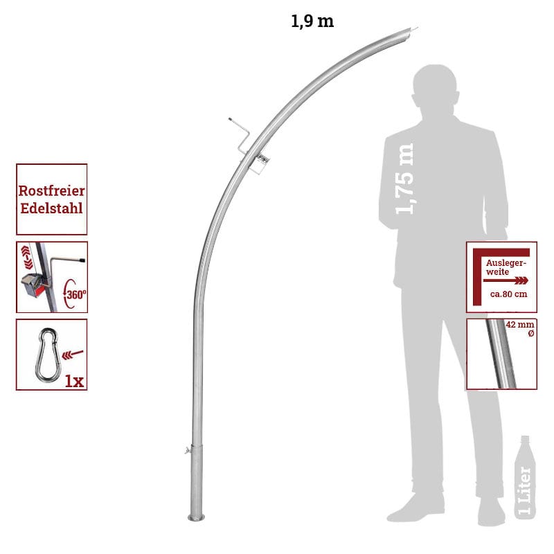 Auslegerweite: ca. 95 cm mit einer Toleranz von +/-4 cm, da freiformgebogen