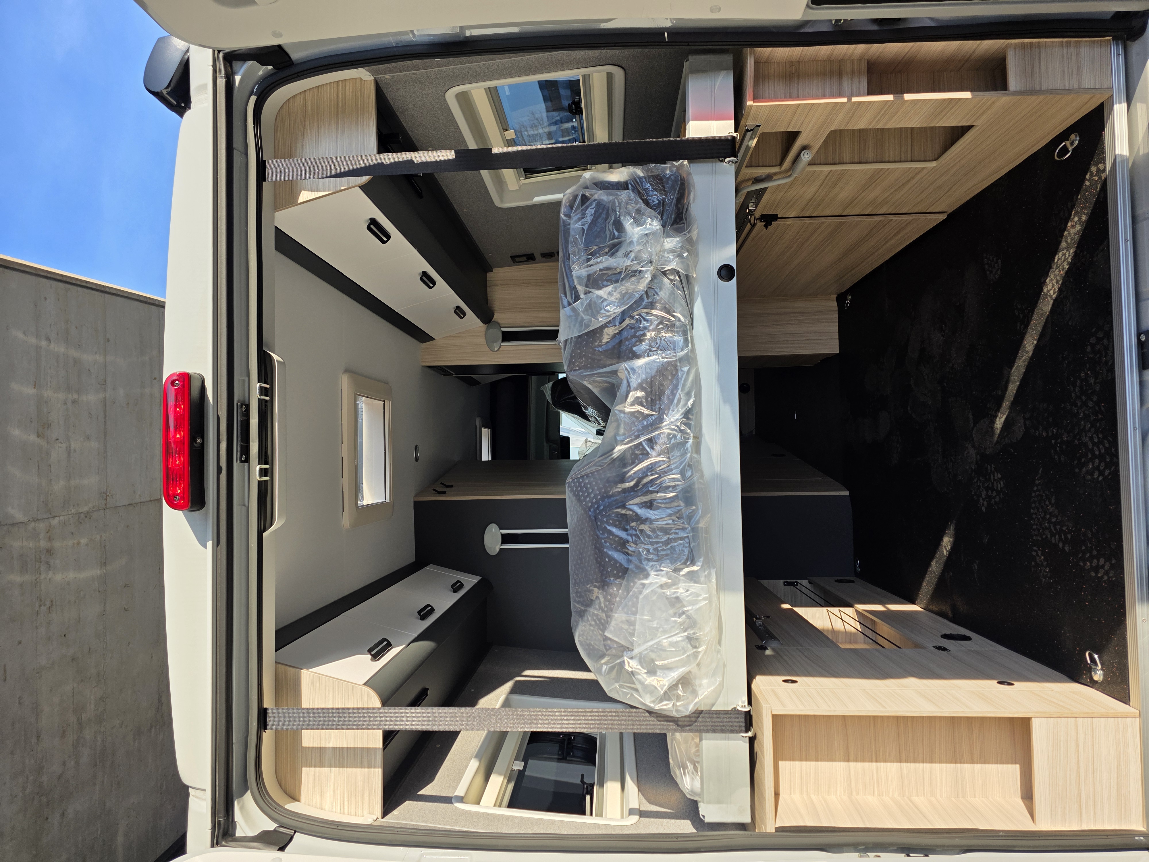Sportlicher Campervan mit Längsbett (Hubbett)