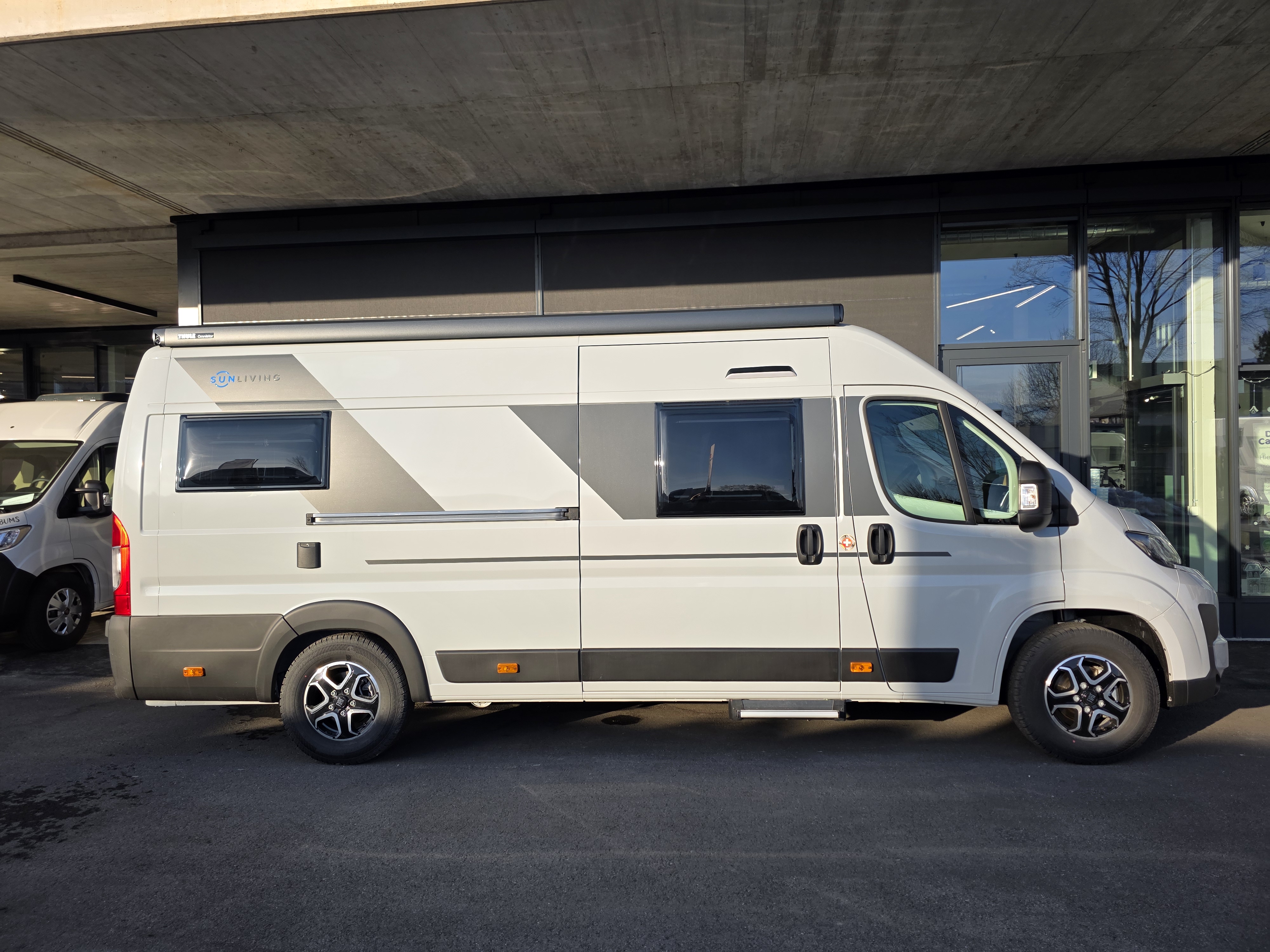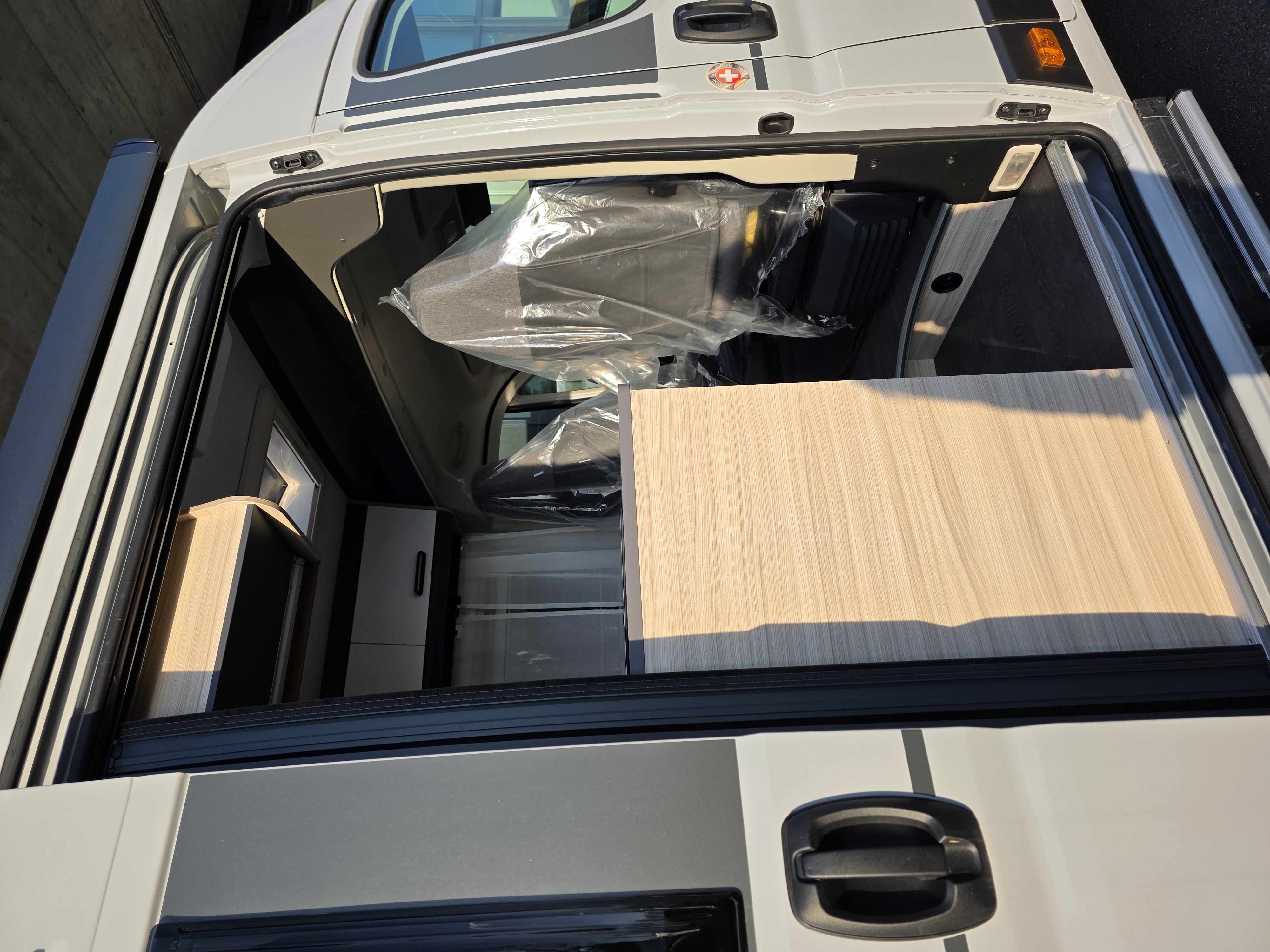 - Swiss-Paket: Spannungsverstärker Booster, Moskitonetz an der Schiebetür, Front- und Seitenscheiben-Verdunkelung mit Pissee