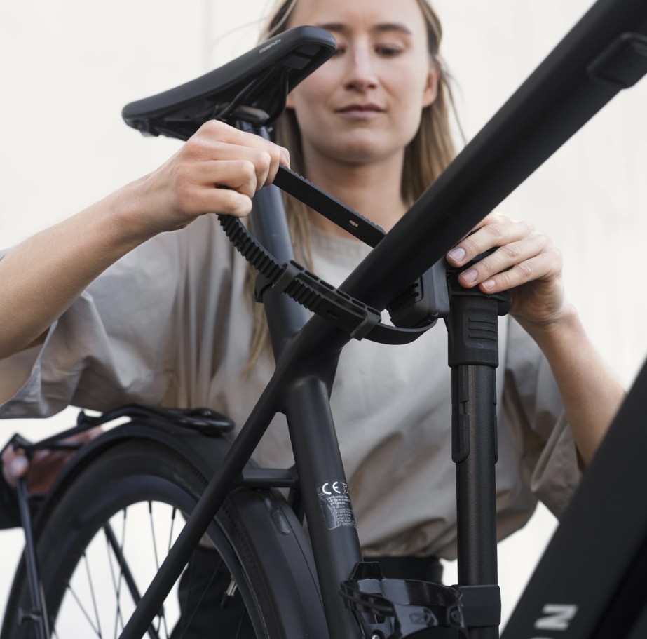 Beweglicher Kopf, der sich dreht, gleitet und flexibel an verschiedene Fahrradgrößen und -stile anpasst, um immer die perfekte Position am Rahmen zu finden
