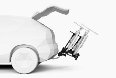 Neigt sich beim Parken in Richtung des Fahrzeugs und ist somit ideal für den Stadtverkehr. Hinweis: Der Fahrradträger darf sich während des Fahrens nicht in aufrechter Position befinden; diese Funktion ist nur zum Parken von Fahrrädern