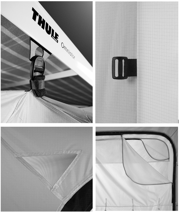 - für Markisen, die nicht mit Schienen ausgestattet sind, bestellen Sie bitte die entsprechende Thule Quickfit Markisenbefestigung
